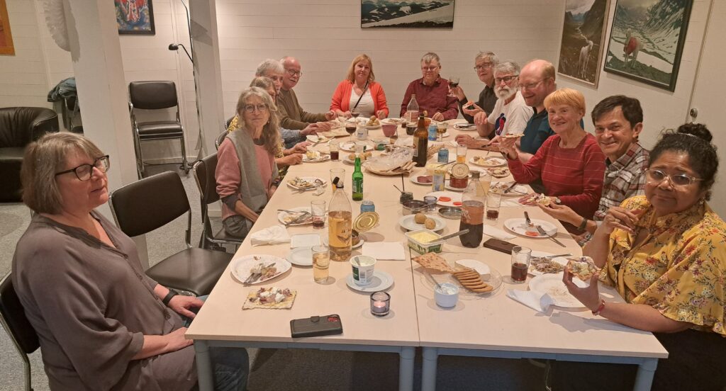 I år fanns det gott om den goda varan i affärerna så fisk saknades inte. Efterrättsbordet var inte heller dåligt, med pajer, kakor och frukt. Mätta och belåtna kunde vi sedan ha möte och diskutera verksamheten och vad som väntar i höst.